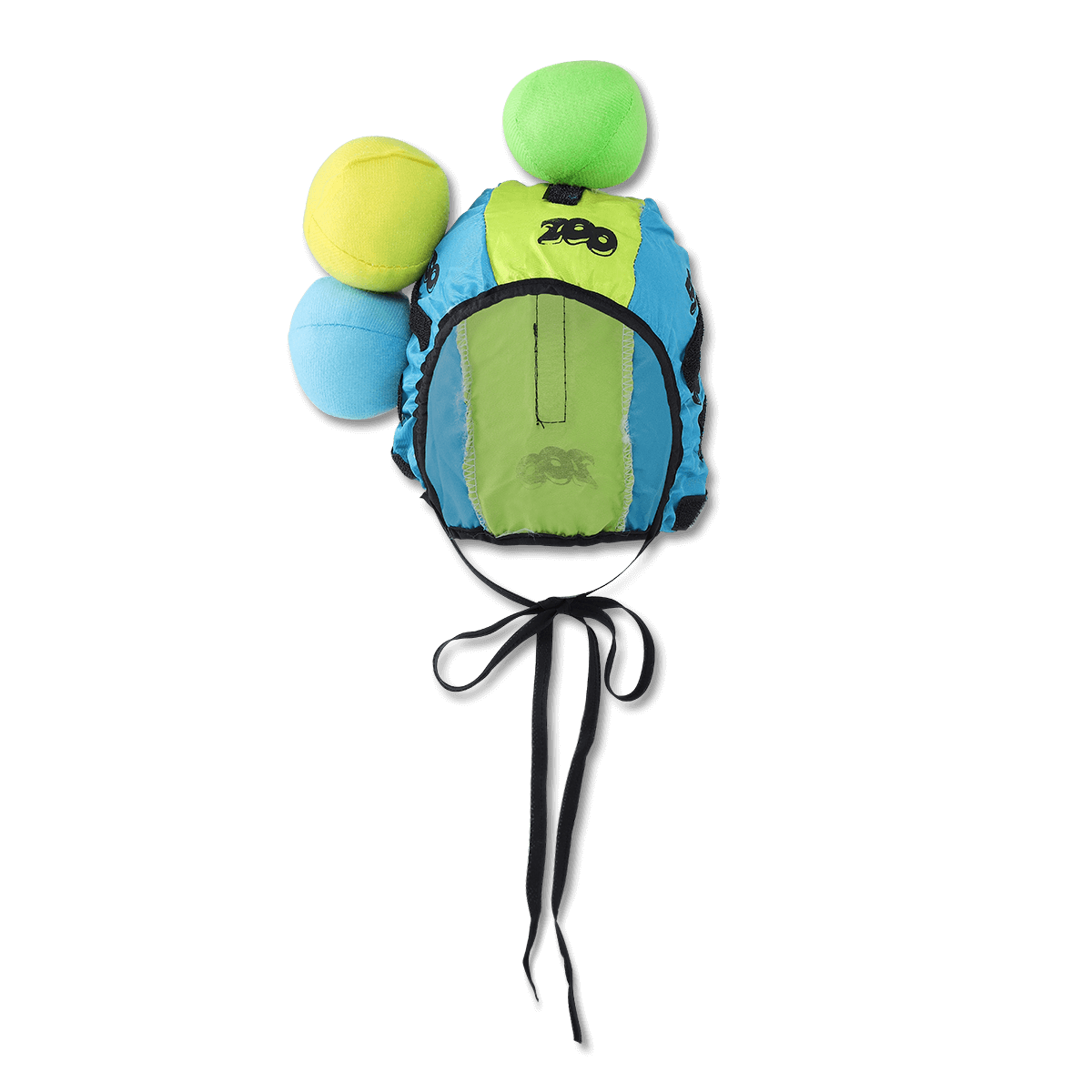Spil med hætte og bolde. Tag hætten på og forsøg at fange boldene, der hænger fast med burebånd, med hovedet. Pakken indeholder 3 bolde og to hætter.