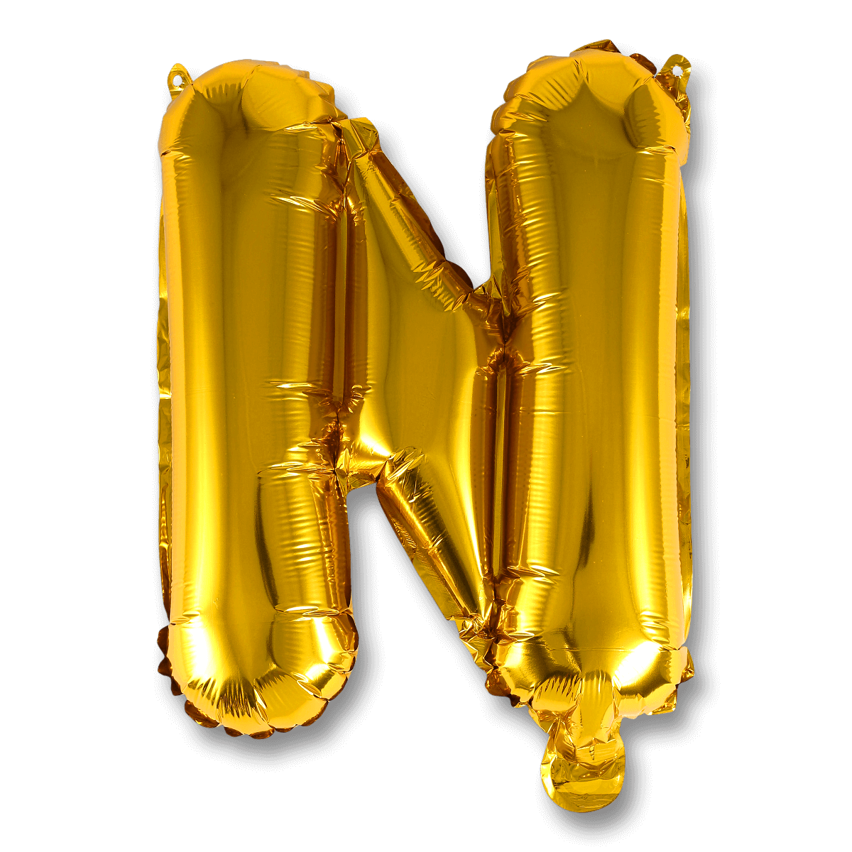 Bogstavet N - folieballon, der pustes op med det medfølgende rør. Vælg mellem sølv og guld. Bogstavet er 37 cm. højt, når det er pustet op. Ikke til helium.