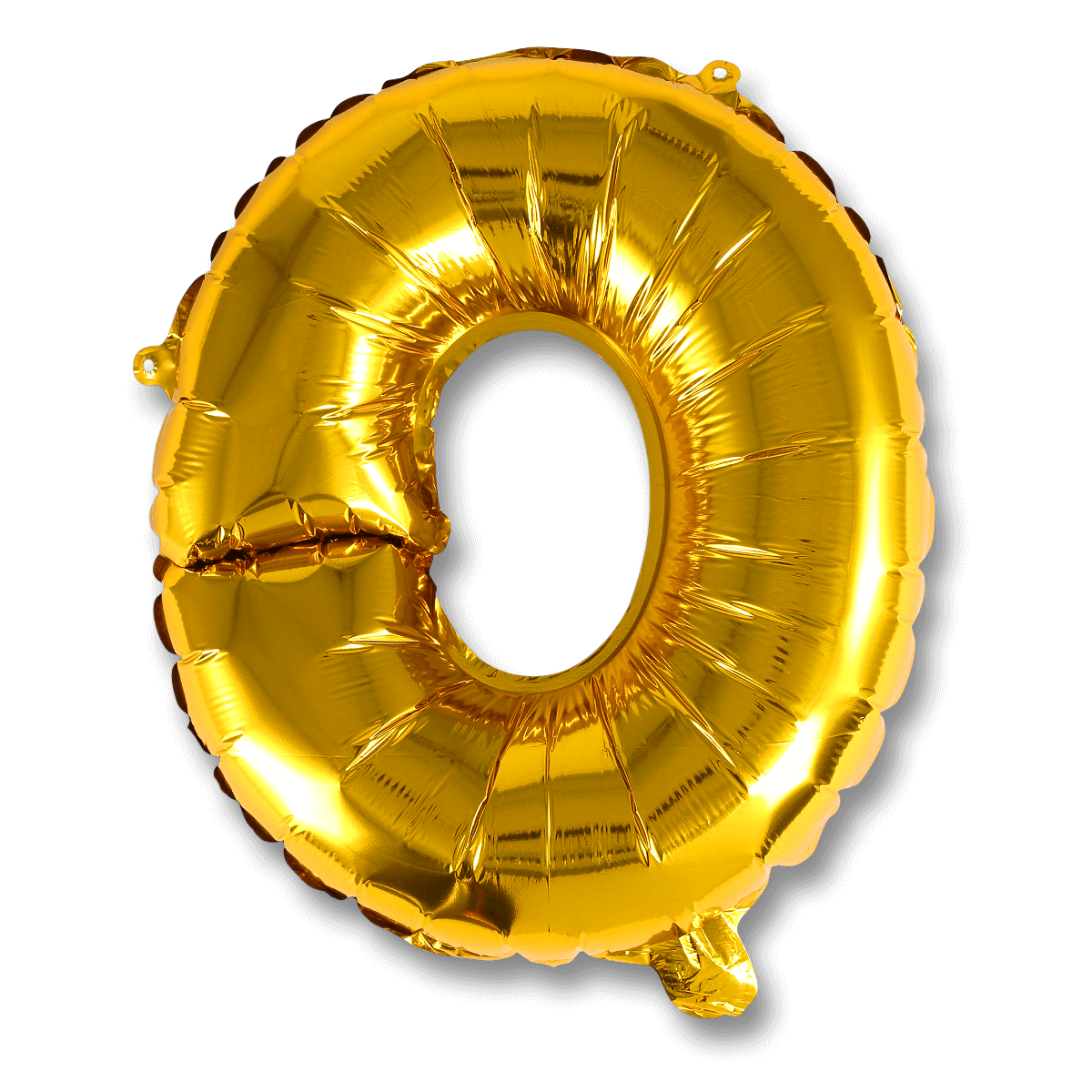 Bogstavet O - folieballon, der pustes op med det medfølgende rør. Vælg mellem sølv og guld. Bogstavet er 37 cm. højt, når det er pustet op. Ikke til helium.