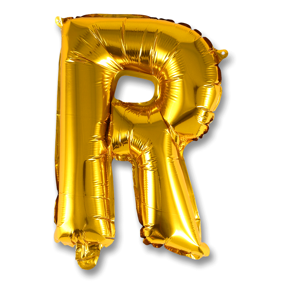 Bogstavet R - folieballon, der pustes op med det medfølgende rør. Vælg mellem sølv og guld. Bogstavet er 37 cm. højt, når det er pustet op. Ikke til helium.