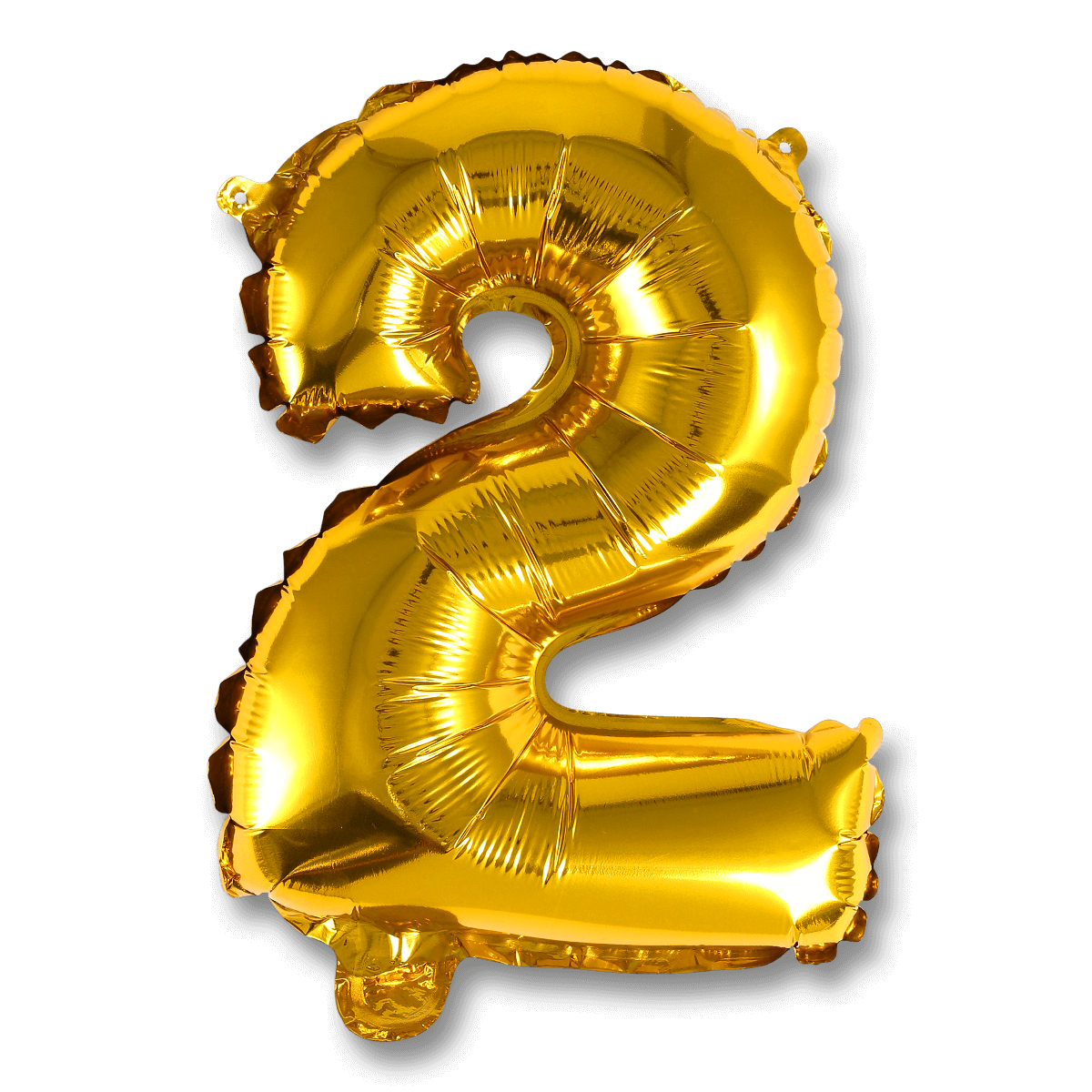 Tallet 2 - folieballon, der pustes op med det medfølgende rør. Vælg mellem sølv og guld. Tallet er 37 cm. højt, når det er pustet op. Ikke til helium.