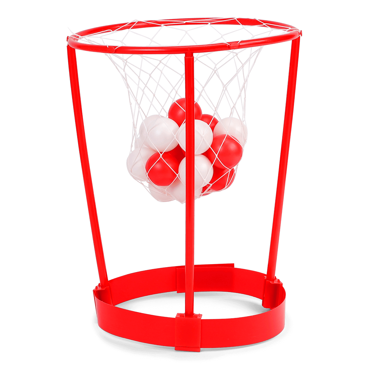 Hovedbasket kan spilles af 2+ spillere. Én sætter nettet fast på hovedet, og de andre spillere forsøger at ramme med boldene. 20 stk. bolde medfølger. Stativet til nettet er 26 cm højt.