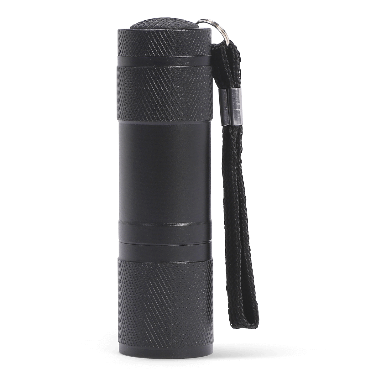 Lommelygte i sort metal med snor til at hænge den om håndleddet eller i bæltet. Bruger 3 stk. AAA batterier (ikke inkluderet).