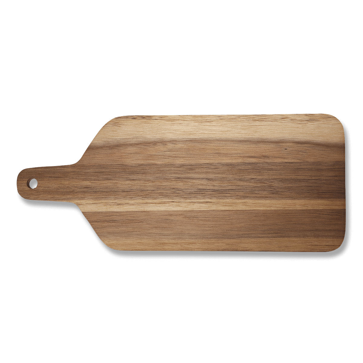Skærebræt i træ. I håndtaget er der et hul til ophæng.