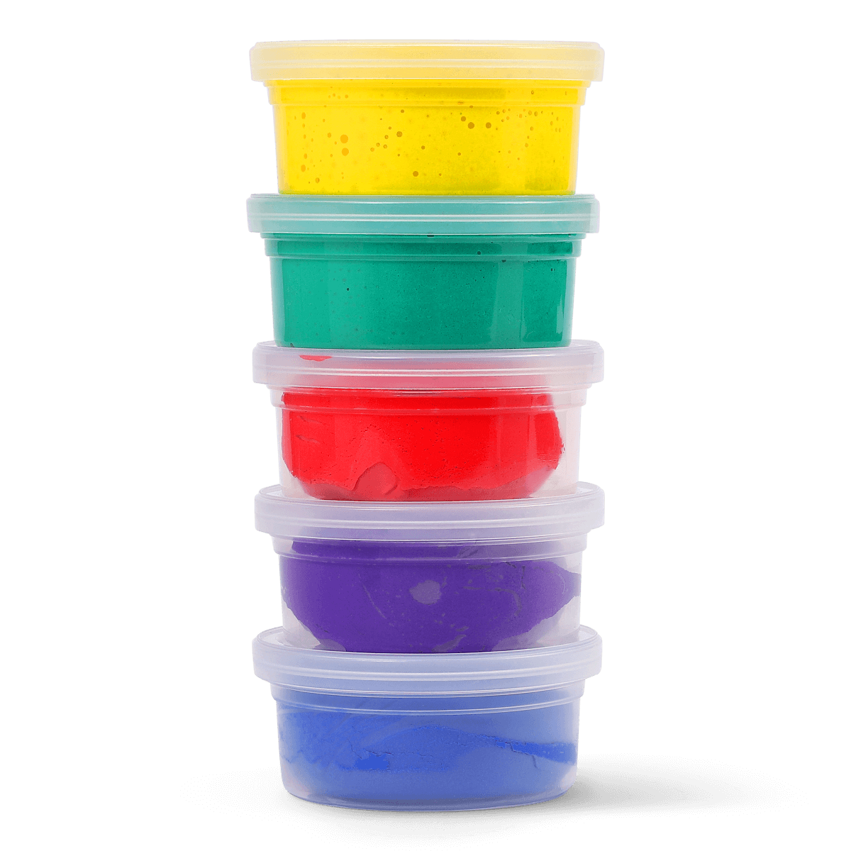 Pakke med 5 bøtter selvhærdende modelleringsvoks i forskellige farver (blå, lilla, rød, grøn og gul). Kan bruges på de fleste genstande og overflader. Holder farve og størrelse efter tørring. Hver bøtte indeholder 45 g.