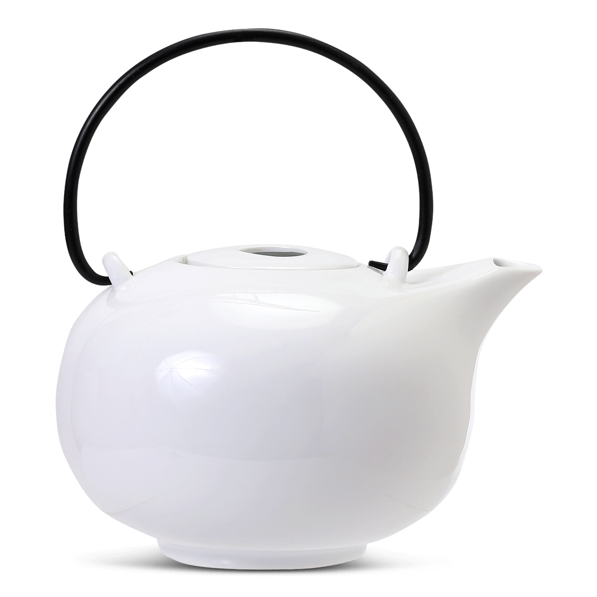 Tepotte i hvid porcelæn med hank af metal. Tesi følger med. Tepotten rummer 1,4 l.